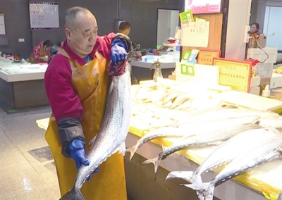 “今天过来买菜,一到市场就看见新鲜的鲅鱼,买了一条包饺子吃、红烧都非常好。”市民董成霞说。