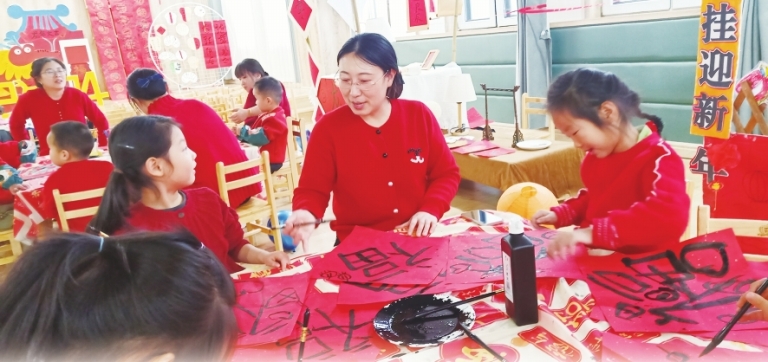 在活动中,孩子们既是活动的组织者,又是活动的体验者,他们一会儿现场拓印的福字、制作鱼灯、串冰糖葫芦,一会儿招呼小伙伴品尝自己的劳动成果,忙得不亦乐乎。“我们主要是想在孩子们的心中种下一颗传统文化的种子,增强他们的文化自豪感和文化归属感,并且通过活动让孩子们体会到自己是生活的主角,学会动手装点生活。”园长高花告诉记者。