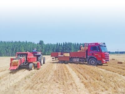 “我种了300亩地,每亩能打15个左右秸秆捆,每个卖4块钱,这样算下来,每亩就能多赚60来块钱。后期种玉米,地里没有草,不挡种子,可以把地种得更好。”合作社成员董淑洁擦着额头的汗水说。早在麦收前,他就和奶牛养殖场达成合作,由合作社负责秸秆打捆,奶牛养殖场承担装车运输工作,这些麦秸经过处理后,将直接成为优质饲料。