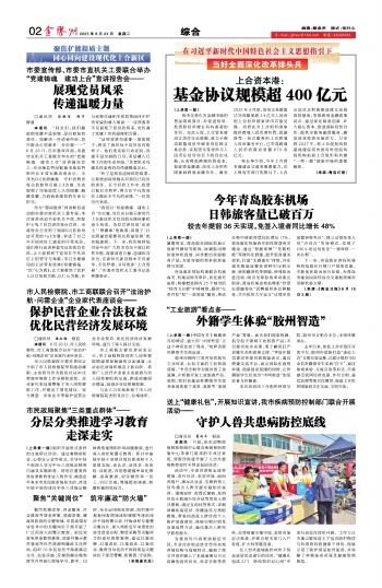 (下转第二版)  (上承第一版)暑期将至,青岛胶东国际机场计划新开静冈等航线,协调航司增加宽体机投放,同步推出优惠服务产品,为旅客提供更多航班选择与实惠。
