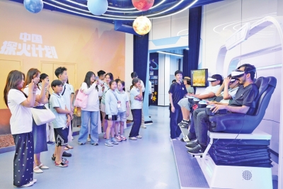 上合青岛星天航空产业园内,外籍学生们参观了航空模型,在VR技术加持下,沉浸式体验火星生活、太空无重力漫步,开启了一场奇妙的“星际穿越”。“这是一次很奇妙的体验。我平常很关注航空航天技术的发展,在这个领域,中国走在世界前列。