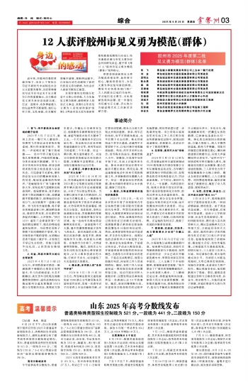 12人获评胶州市见义勇为模范(群体)