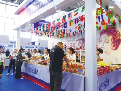 在C馆俄罗斯展区里,负责人维达正用流利的中文向前来选购的市民和游客介绍蜂蜜产品:“这是西伯利亚原始森林的椴树蜜,我们已经卖了三年了,十分受欢迎。”她指着展台上即将售罄的货架说道。