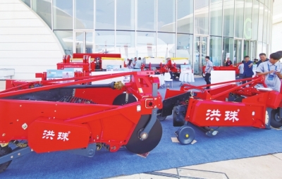 G馆入口处,青岛洪珠农业机械有限公司的展区以一抹亮眼的“洪珠红”成为焦点,吸引着客户们驻足,“这款马铃薯杀秧机通过马铃薯机械杀秧,使马铃薯块茎的表皮充分木栓化,与茎秧分离更加容易,表皮的老化也可以显著减少收获时的破皮率。该机操作方便,可靠性好,作业效率高,保证商品薯品质,粉碎后的茎秧还田,可以提高土壤肥力……”伴随着工作人员的介绍,客户们纷纷拿起手机拍照并留下联系方式。