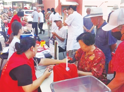 活动现场人头攒动,气氛热烈。志愿者们身着统一服装,分工协作,为居民提供多项免费服务。